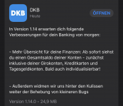 War bei mir in vor 1-2 Wochen einige Tage lang immer mal wieder so. GIro und Depot waren weg, nur die Visa Credit wurde angezeigt.Ist bei euch in der neuen DKB App der gesamte Kontostand auch verschwunden?