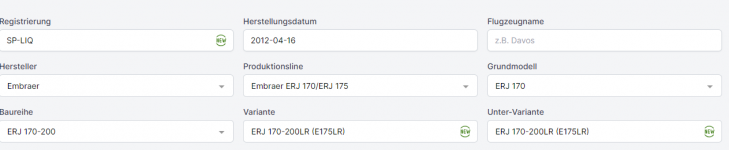 Sowohl Variante als auch Herstellungsdatum passen hin und wieder nicht zu den Daten bei Planespotters, manchmal ist das First Flight Datum Herstellerdatum, manchmal ist es das Übergabedatum, manchmal keine von beiden...