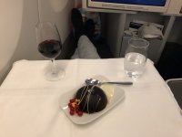 Zunächst entschuldigt sich die Flugbegleiterin, daß es mein bestellter Lobster wohl leider nicht mit ins Flugzeug geschafft hätte und ich doch etwas von der Karte nehmen müsse, doch während der Vorspeise kam sie noch einmal freudestrahlend wieder, sie hätten ihn jetzt doch noch gefunden :)