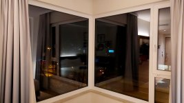 Das Upgrade war mehrere Tag vorher bereits in der App sichtbar. Online Check In habe ich nicht gemacht. Ich konnte bereits um 13.30 Uhr einchecken und bekam ein Eckzimmer. Die Eckzimmer zur Hauptstraße (Reichenaustr.) hin haben im Gegensatz zu allen anderen Zimmern zwei große Fenster, siehe Foto.